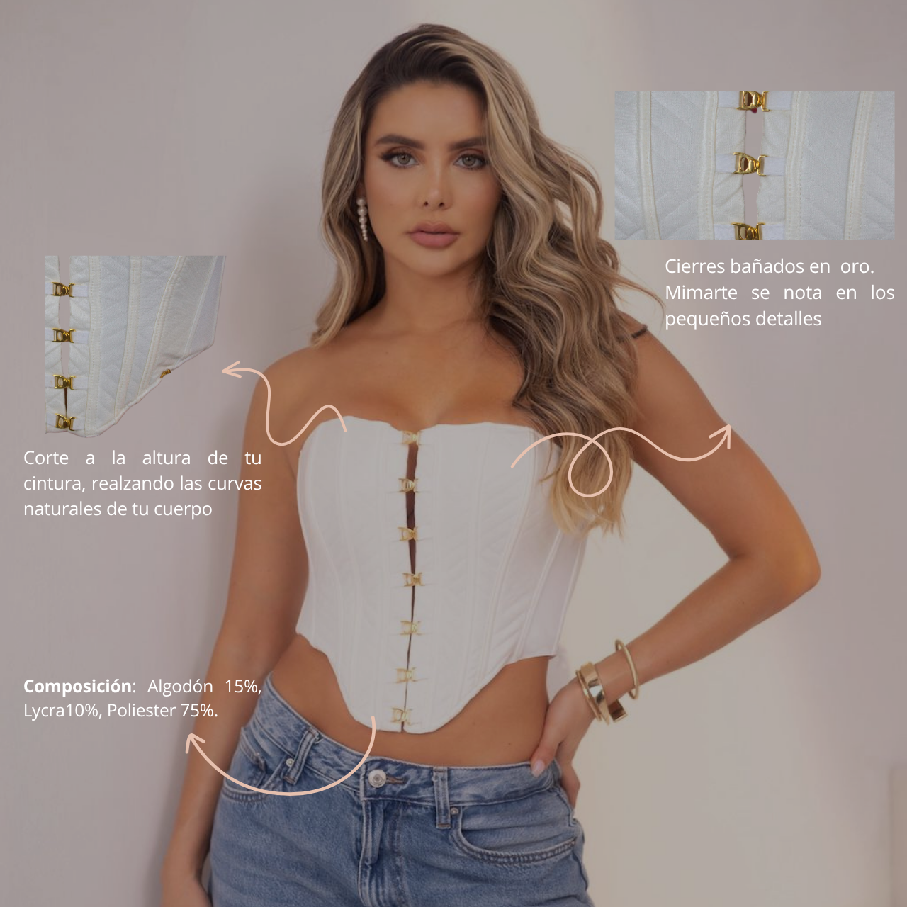 El Corset Venus es una oda a la feminidad en su forma más poderosa. Inspirado en la diosa romana del amor, la belleza y el deseo, esta prenda combina sensualidad y elegancia en cada costura.